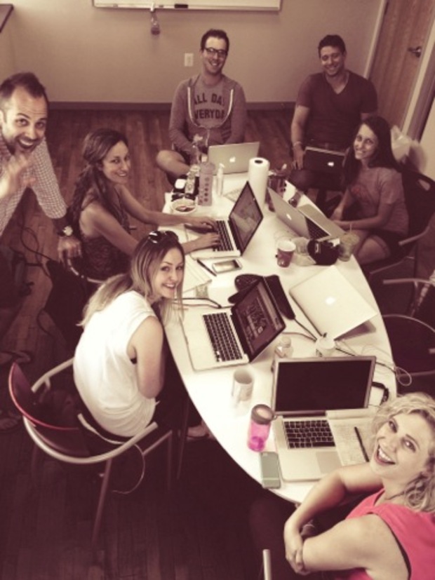 The CrowdRise team around the office's ping pong table.
