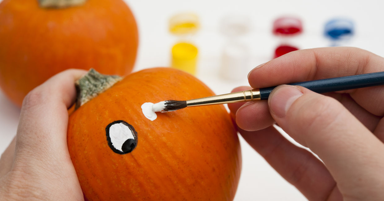 Many people carve their pumpkins but that is usually a parent do and kid watch activity. Let the kids get in on the action by decorating their own pumpkin. You can use permanent markers – water based doesn't work on pumpkins – puffy fabric paint, glitter glue, acrylic paint and you can use a variety of age appropriate material like eyes, beads, yarn, and other craft materials online or at a craft store.
