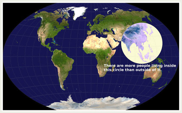 While we all vaguely know that Asia is densely populated, this simple map and illustration makes that understanding starkly clear.