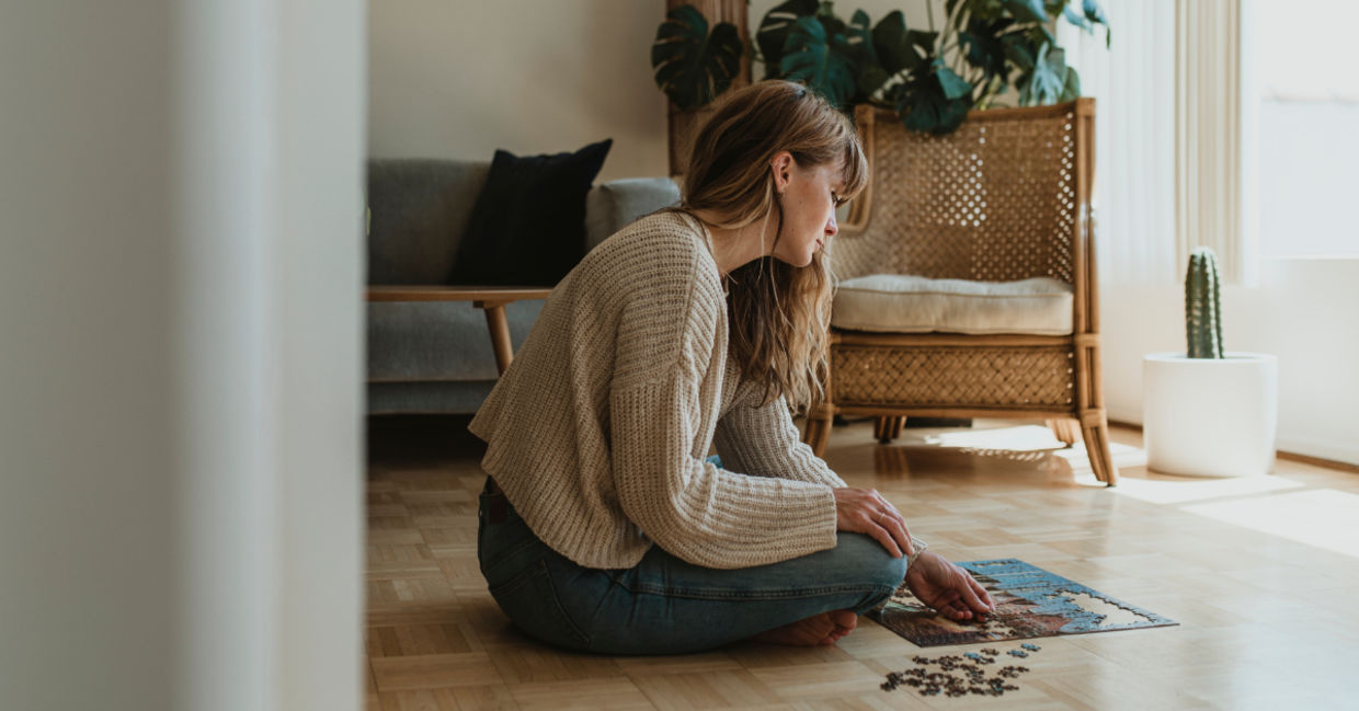 The act of solving puzzles encourages mindfulness, as it requires us to be fully present and engaged, Forbes reports. Within the parameters of a puzzle, we must pay attention to every detail, analyze patterns, and think critically. This enhances our ability to observe and stay connected to the present experience without allowing worrisome thoughts to take control. Regularly practicing this kind of focused attention during puzzle-solving creates a pathway to cultivating mindfulness in other areas of life as well. "This helps lower your heart rate, stop intrusive thoughts from running in loops and promotes a sense of calm," says Madeline Lucas, licensed master social worker told Forbes.