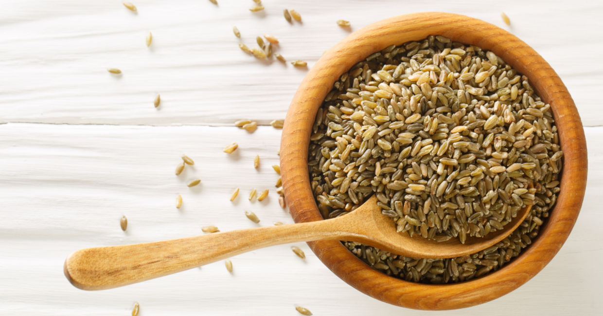 Freekeh, derived from the Arabic word “rub”, comes from durum wheat, a popular hard wheat variety used for pastas. The durum wheat is harvested young while it is still green and moist. After harvesting, the grain remains in its hulls and is burnt. The resulting toasted grain is what is known as freekeh.